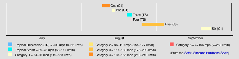 | Strongest storm | "Last Island", 150 mph (240 km/h) |