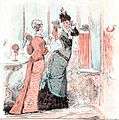 - Cartoon "Veto" by George du Maurier from Punch, satirizing the tight dress styles of the late 1870s.