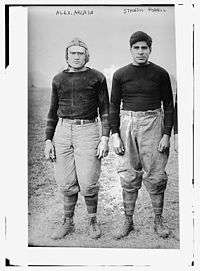 The 1911 Carlisle Indians football team represented the Carlisle Indians football team of the Carlisle Indian Industrial School during the 1911 college football season. The Indians were coached by Pop Warner in his 10th year as head coach. The team compiled a record of 11–1 , outscored opponents 298 to 49. The season included one of the greatest upsets in college football history. Against Harvard, Jim Thorpe scored all of the Indians' points in a shocking upset over the period powerhouse, 18–15. The only loss for Carlisle came at the hands of Syracuse the following week, 12–11.[1] Walter Camp selected Thorpe first-team All-American. One source claims Thorpe was "recognized as the greatest player of the year and a man whose kicking is likely to revolutionize the game."[2] College Football Hall of Fame members on the team include Thorpe, Gus Welch, and William "Lone Star" Dietz.