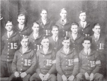 Coached by Ralph Jones, the 1914–15 Fighting Illini men's basketball team became the first undefeated Big Ten champion in the history of the school as well as the fourth Big Ten National Champion.[1] That 1915 season was the third in the eight-year tenure of head coach Ralph Jones and it produced the only unbeaten season in Illini history and the first Big Ten title for the Illinois basketball program. The Illinois team was retroactively named national champions by the Helms Athletic Foundation and the Premo-Porretta Power Poll.[2] Jones’ 1915 team scored twice as many points as its opponents and won the conference title by three games over Chicago. The arrival of the Woods brothers in 1914 had a lot to do with the success of this era. Guard Ray Woods was named first-team All-America all three years he competed (1915–17), and twin brother Ralf, a forward, led the team in scoring in both 1916 and 1917. His consistency at the free throw line led to the establishment of the Ralf Woods Award, which is still given annually to the Fighting Illini player with the best free-throw percentage. The starting lineup included Frank Bane at center, Clyde Alwood and Edward Allan Williford at the forward postitons, captain Sven Duner at guard and brothers Ralf Woods and Ray Woods. Ray Woods was named an All-American during this season.[3]