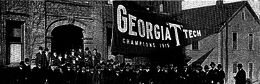 The year's only blemish was a scoreless tie against the rival Georgia Bulldogs in inches of mud.[19] John G. Henderson headed a group of three men, one behind the other with his hands upon the shoulders of the one in front, to counter Heisman's jump shift offense.[20] Georgia outplayed Tech throughout.[19] Georgia was once on Tech's 8-yard line, in the first quarter, but Walter Neville fumbled and Tommy Spence recovered.[19]