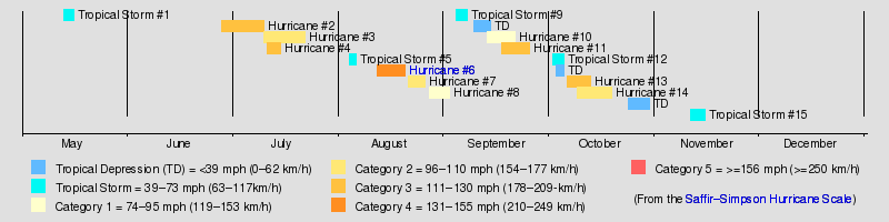 1916 was a fairly active season, especially for the time. Fifteen tropical cyclones formed during the course of the year. Ten hurricanes formed, and five of those were major hurricanes.