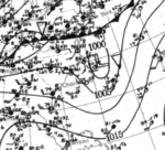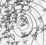 On June 19 a weak tropical depression formed from the tail end of a dying cold front, north of Western Bahamas and east of Florida. The tropical depression moved generally north after its formation. Failing to intensify further it was absorbed by a stronger cold front sweeping down the East Coast on June 22. The peak winds from this system were 25 knts (30 mph, 45 km/h) from ship observations on June 19. The lowest pressure was 1012 millibars. Due to the weak nature of this system and lack of gale winds it was evaluated as a tropical depression and was not included in HURDAT. In 2009 this tropical depression was first detected from Historical Weather Maps when Landsea and his team of researchers did a total reanalysis of the 1923 Atlantic hurricane season.[1]