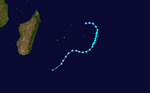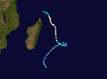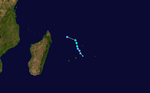 Angele form on December 13, while stationed in the middle of the Mozambique Channel. It traveled north and gradually organized into a tropical storm while performing a tight counter-clockwise loop. On December 18 Angele intensified into a tropical cyclone before making landfall on Mozambique. Angele weakened to a tropical storm while over land, but re-intensified back to a tropical cyclone as it re-emerged into the Mozambique channel. The cyclone moved south and quite abruptly, on December 23, moved to the northeast. On December 24 Angele reached a peak intensity as a category three cyclone. The system weakened slightly before making landfall on Madagascar two days later. The weak storm moved over the open Indian Ocean and translated into an extra-tropical storm.