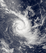 Several areas of convection persisted within the ITCZ in early March across the open Indian Ocean. One of these organized into a tropical storm on March 2 about 700 km (430 mi) south of Diego Garcia and was given the name Daodo.[21][22] On the following day, the JTWC began tracking it as Tropical Cyclone 21S.[2] Daodo moved slowly initially while quickly strengthening into a severe tropical storm. On March 4, a weak ridge steered the storm to the east, and the storm weakened slightly during this time. Three days later a stronger ridge to the east turned Daodo to the southwest, bringing it over its former path. On March 8, the JTWC upgraded the storm to the equivalent of a minimal hurricane. On the following day, the MFR upgraded Daodo to tropical cyclone status, estimating peak 10 minute winds of 135 km/h (85 mph), although it weakened back into a tropical storm on March 10. The storm accelerated to the southeast on the next day and maintained much of its intensity due to baroclinic interactions with a nearby anticyclone. On March 13, Daodo turned back to the southwest before moving more southward and later to the southeast. On March 18, the storm dissipated within a polar trough northwest of Île Amsterdam.[21][22]
