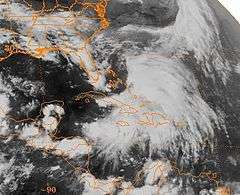 Satellite image of the system over the Greater Antilles | |