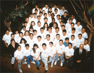 Over the course of the project the team included at least 260 student members (see list of known team members below). Note that not all team members participated for the duration of the project (more than 3 years) or contributed the same amount of time and effort. One team member of note is Larry Page,[1] seen at the top left of the photo at right, co-founder of Google, who participated in the early phase of the project but did not play a significant role in the final phases. In total approximately 70,000 hours of student labor were invested in the project.