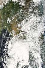 On June 28, an area of disturbed weather in the Bay of Bengal that had persisted as a well-marked low pressure area for two days became more organised.[45] The India Meteorological Department (IMD) noted the formation of a depression around 0000 UTC (5:30 am IST) southeast of Puri, Orissa, India. The IMD also stated that the system intensified into a deep depression three hours later whilst remaining "practically stationary".[46] The Joint Typhoon Warning Center (JTWC) issued a Tropical Cyclone Formation Alert shortly after, noting that observations from the eastern coast of India had recorded falls in pressure corresponding with the system's development. Furthermore, an upper-level anticyclone had formed over the disturbance, which would maintain the favourable wind shear conditions.[47] The JTWC initiated advisories later that day,[48] as the depression moved northwest towards the Orissa coast.[49] The depression made landfall near Puri early on June 29.[50] The JTWC then issued its last advisory later that day, as the system moved inland.[51] Early on June 30, with the system centred over Madhya Pradesh and Chhattisgarh, the IMD downgraded the system to a depression,[52] and discontinued advisories 6 hours later.[53]