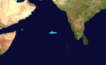 On October 27, a westward-moving disturbed area of weather formed about 885 nm east of Cape Guardafui, Somalia was designated Depression ARB 02/2007 by the IMD.[74] The next day, the Joint Typhoon Warning Center designated the depression as Tropical Cyclone 05A.[75] Soon after, the IMD upgraded the depression to a deep depression.[76] The Deep Depression did not develop and degenerated into a low pressure area on November 2 as it moved further west.[77][78][79] Agathi in Laskwadeep Islands received 70 mm of rainfall on 29 October.[14]