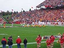 173. 1 2 3 Halliburton, Suzanne (October 14, 2007). "Texas Plays Part of Bossy Houseguest - Iowa State, Coached by Ex-UT Assistant, Suffers Through 56-3 Blowout at Hands of Horns". Austin American-Statesman. Cox Enterprises. Archived from the original on October 17, 2008. Retrieved October 16, 2007.