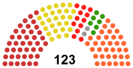 | Social Democratic Party | 49 | 35.77% | 15 | 3 | 40 | 31.39% | |
