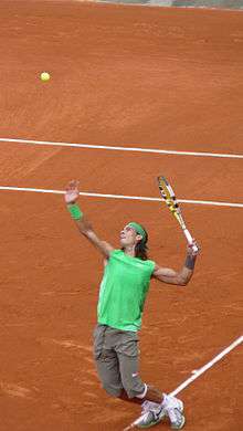 ![]() Rafael Nadal at the 2008 French Open. | |