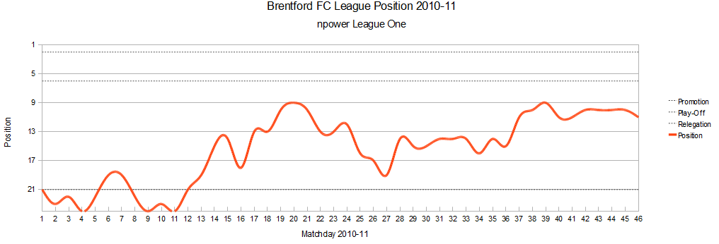 The 2010–11 season is Brentford's 2nd consecutive season in League One following their championship winning promotion from League Two in 2008–09. Brentford will be looking to improve on the 9th place that they achieved at the conclusion of the 2009–10 season.