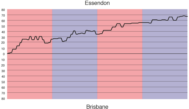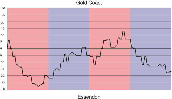 | 17 | Gold Coast | 22 | 3 | 19 | 0 | 1509 | 2481 | 60.82 | 12 |