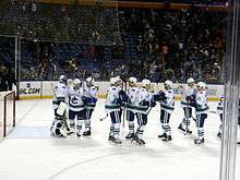 Two days later the Canucks defeated San Jose, breaking a nine-game losing streak with the Sharks.[103] Vancouver lost the final two games of the trip with a combined 8–2 score. Henrik Sedin went scoreless in the final three games of the trip, posting a –5 rating, and was demoted to the second line.[104] Returning home, the Canucks fared no better, losing five of six games and posting a 1–2–3 record.[105] In all five losses the Canucks were tied or leading the game in the third period.[106][107][108][109][110] Before the team's November 28 game in Ottawa, Totarella challenged Luongo to make more saves at important times during the game to help Vancouver win. He also moved Kesler back to center after he had failed to score an even strength goal in 12 games.[111] During the game Daniel Sedin scored his 300th career goal becoming the third player in franchise history to reach this mark, behind Markus Naslund and Trevor Linden.[112]