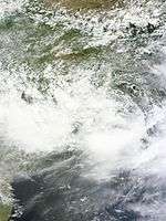 The depression brought heavy rainfall to coastal West Bengal. Kolkata received 206 mm (8.1 in) of rainfall over a span of three days, the wettest spell of the monsoon season, causing flooding. At least four people were reported to have been killed across the state due to rain-related events.[31] The system's precursor low caused authorities to raise cautionary signal number 3, at all maritime ports of Bangladesh.[32] Pachmarhi in Madhya Pradesh received 500 mm (20 in) of rainfall in 72 hours.