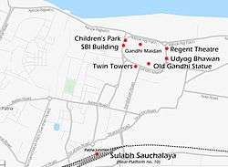 - 12:15 near Twin Towers of Southern Periphery of Gandhi Maidan
