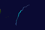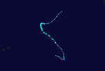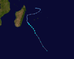 Fantala formed on April 11 to the south of Diego Garcia.[4] With a ridge to the south, the storm moved westward for several days while gaining strength, aided by warm waters and decreasing wind shear.[5][6] Late on April 17, the MFR estimated peak 10-minute sustained winds of 250 km/h (155 mph), the highest on record in the basin.[7] Meanwhile, the JTWC estimated peak 1-minute sustained winds of 280 km/h (175 mph), tied only with Cyclone Agnielle from November 1995 as the strongest cyclone on record in the south-west Indian Ocean.[8][9] The system weakened due to an eyewall replacement cycle, and a change of steering currents caused Fantala to reverse direction and accelerate southeast. This brought the cyclone over cooler waters previously upwelled by itself, causing further weakening. Between April 19 and 23, Fantala fluctuated in intensity. At first, the eye became more pronounced,[10] but wind shear soon caused weakening to resume. By April 22, Fantala stalled again due to a building ridge to its south. Fantala accelerated back northwest as a moderate tropical cyclone, with the JTWC and MFR issuing their final advisories on April 24. The remnants of Fantala continued northwest.