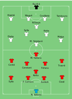 Guinea took the lead in the 15th minute with a penalty by Kévin Constant, which was awarded due to a handball by Salif Coulibaly. Mali then were awarded their own penalty three minutes later after Baissama Sankoh was penalised for handball, but Seydou Keita's penalty was easily saved. Mali equalized in the 47th minute, when Abdoulay Diaby crossed for Modibo Maïga to head home. The match finished in a 1–1 draw, the same scoreline as both Guinea and Mali's previous two matches, meaning that the two teams were tied on head-to-head record, overall goal difference, and overall goals scored. A drawing of lots were held the next day to decide which team qualify for the quarter-finals as group runner-up, which was won by Guinea (see below for details).[20][21]