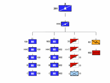 The 201st BfSB currently consists of two military intelligence battalions (MI BNs), a cavalry squadron (CAV) with a long range surveillance (LRS) troop of company strength, a network support company (NSC), and two support companies (HHC and 602nd FSC).[2]