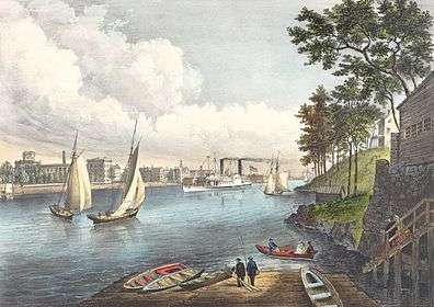 "Blackwells Island, East River, from Eighty Sixth Street", Currier & Ives, 1862: the villa overlooking the river had belonged to John Jacob Astor