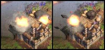 Age of Empires III builds on and introduces new features to the Age of Mythology engine, called Bang! Engine.[20] One new feature is the inclusion of the Havok physics simulation middleware engine[21] on the Windows version and the similar PhysX engine on Mac OS X. This means that many events such as building destruction and tree falls will not be pre-created animations, but will be calculated according to the physics engine, in an innovation for the series. Other graphical features of the game include bloom lighting and support for pixel shader 3.0.[22]