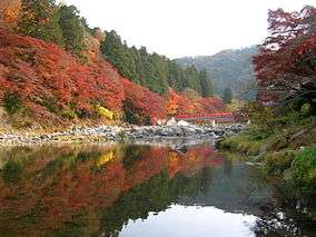 Aichi-Kōgen Quasi-National Park (愛知高原国定公園 Aichi-Kōgen Kokutei Kōen) is a 21,705-hectare (53,630-acre) quasi-national park in the Tōkai region of Honshū in Japan. It is rated a protected landscape (category III) according to the IUCN. As with neighboring Hida-Kisogawa Quasi-National Park and Tenryū-Okumikawa Quasi-National Park the park includes mountainous landscapes with gorges and dense forests. The part is on the border between Shizuoka and Aichi Prefecture, but is entirely within Aichi. It also includes a portion of the Tōkai Nature Trail. [3] It encompasses the area around Yahagi Dam and the Kourankei scenic areas. The area was designated a quasi-national park on December 28, 1970.