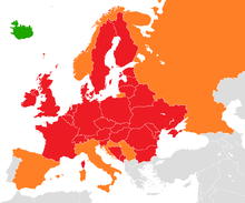 After an initial uninterrupted shutdown over much of northern Europe from 15 to 23 April, airspace was closed intermittently in different parts of Europe in the following weeks, as the path of the ash cloud was tracked. The ash cloud caused further disruptions to air travel operations in Republic of Ireland, Northern Ireland and Scotland on 4 and 5 May[7] and in Spain, Portugal, northern Italy, Austria and southern Germany on 9 May.[8] Irish and UK airspace closed again on 16 May and reopened on 17 May.[9]