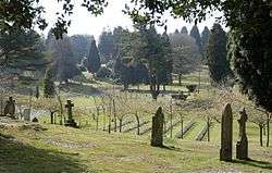 At one time the cemetery held the graves of 78 German soldiers who had died in this country as Prisoners of War, including that of Generalfeldmarschall Ernst Busch, 2 other German Army officers, 13 members of the Luftwaffe and 7 sailors; these were exhumed in February 1963 and were reburied at Cannock Chase German war cemetery in Staffordshire. The cemetery also held the graves of 25 Italian POWs who were similarly exhumed and reburied in an unknown location.[3] In addition, 17 victims of the Blackbushe Air Disaster of May 1957 are buried in the cemetery,[4] as well as over 50 Canadian soldiers of both World Wars, plus the graves of Poles, South Africans, Gurkhas, Belgians, Dutch, New Zealanders and one Russian,[5] amongst others.[6]