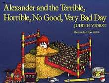 Alexander and the Terrible, Horrible, No Good, Very Bad Day, published in 1972, is an ALA Notable Children's Book written by Judith Viorst and illustrated by Ray Cruz.[1][2] It has also won a George G. Stone Center Recognition of Merit, a Georgia Children's Book Award, and is a Reading Rainbow book. Viorst followed this book up with two sequels, Alexander, Who Used to be Rich Last Sunday ISBN 978-0-689-30602-0, and Alexander, Who's Not (Do You Hear Me? I Mean It!) Going to Move ISBN 0-689-31958-4.