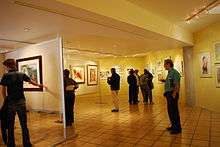 Behind the main house is the Berta Pietrasanta Temporary Exhibition Hall, which holds shows of mostly watercolor works by both Mexican and international artists.[4][7] Its largest show is the Bienal Internacional de Acuarela (International Biennial of Watercolors), an international exhibition of watercolors held every two years.[3] Other recent shows included a display of 45 lithographs by Honoré Daumier which were donated to the Museo de la Estampa in 1999 and returned for the show.[3] Another show was a collection of winners from a watercolor contest in Michoacán featuring work by Joel Astreo, from Zamora; Nadia Nucico, from Uruapan; Ángel Pahuamba, from the Meseta Purépecha area ; Mireya Parra, from Morelia; Judith Lara, from Morelia; Dionicio Pascoe, from Tacámbaro; Mercedes Fernández, from Capula, and Javier López, from Morelia.[8]