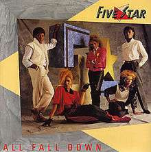 "All Fall Down" is the name of a 1985 hit single by British pop group Five Star. The single was the third UK release from their first album Luxury of Life, released in June 1985. The single was written by Barry Blue and Robin Smith, themselves famous for writing songs for artists in the 1970s.