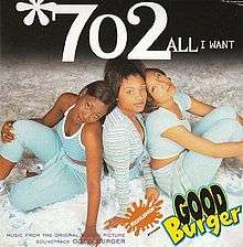 "All I Want" is a song by American R&B group 702 recorded for the group's debut album No Doubt (1996). The song was released as the third single for the album as a promotional single for the soundtrack to the 1997 film Good Burger on July 29, 1997.