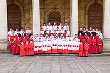 The choir of All Saints' Church, Northampton was formed in the Middle Ages and consists of boys and men and more recently, girls. The boys choir, the last of its kind singing in Northamptonshire, range from 8 to 14 years old and the girls from 12 to 18. The men consist of choral scholars with an age range of 15 to 18, most of them having previously sung in the treble line, and lay clerks. These choirs sing at least three fully choral services a week: Mass on Sundays mornings, and evensong on Wednesdays and Thursdays at 6pm. At Mass the choir sings a full Mass Setting (Kyrie, Gloria, Sanctus, Benedictus, Agnus Dei), an offertory anthem and various other pieces of liturgical music, as well as leading the hymns. At Evensong the choirs sing an anthem, a canticle setting (Magnificat and Nunc Dimittis), responses, and a psalm.