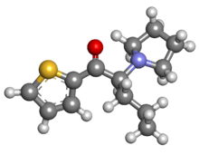 α-Pyrrolidinopentiothiophenone (also known as α-PVT) is a synthetic stimulant of the cathinone class that has been sold online as a designer drug.[1][2][3] It is a analogue of α-PVP where the phenyl ring has been replaced by thiophene.