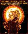 All paintings of the cycle the artist herself calls visual metaphors to the book and not illustrations.[1] The first half of Hades' cycle begins addressing the Last Man, "who makes everything small". The last man is sneaky and coward, he takes no risks, but he wants success and comfort. The second half of the cycle is devoted to Zarathustra himself and to his friend — the eagle.