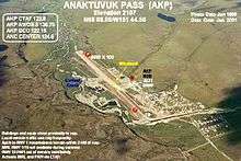 Anaktuvuk Pass Airport (IATA: AKP[2], ICAO: PAKP, FAA LID: AKP) is a public use airport located in Anaktuvuk Pass,[1] a city in the North Slope Borough of the U.S. state of Alaska. The airport is owned by North Slope Borough.[1]