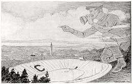 Shortly after the completion of the 1925 season and while he was in Philadelphia Smith died unexpectedly because of pneumonia.[23] This was on January 9, 1926 when he was 42 years old. He left no family, all of his $30,000 estate went to the university and the city of Berkeley. With $10,000 going towards football scholarships. His memorial service was held at the gates of Memorial Stadium and in accordance with his wishes, his ashes were scattered over the field.[24] In 1927, the Andy Smith Bench put at a sideline of the Memorial Stadium was dedicated in his honor. The built in 1923 California Memorial Stadium is still known as "The House that Andy built" because the Wonder Teams' season tickets completely paid for it .[25] Andy Smith was inducted into the College Football Hall of Fame in 1951.[2]