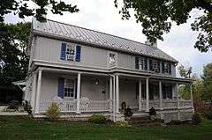 Angle Farm, also known as Maplebrow, is a historic home located at Montgomery Township in Franklin County, Pennsylvania. It is a three-part, two-story, five bay log and timber frame dwelling on a fieldstone foundation. The original three bay log section was built between about 1800 and 1815, and two additional bays were added in the 1850s. It is sheathed in stucco and board-and-batten siding. A modern frame kitchen wing is attached to the rear. It has a one-story full length front porch, added in the 20th century, and a slate roof. Also on the property are a contributing springhouse and frame stable.[2]