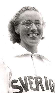Anna-Lisa Augustsson (29 December 1924 – 22 September 2012) was a Swedish sprinter. In 1952 she won the national 100 m and 200 m titles, and became the first Swedish woman to run 100 m in 12 seconds at an official competition. The same year she competed at the 1952 Summer Olympics, but failed to reach the finals of the 100 m and 4 × 100 m relay events.[1][3][4]