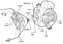 The docking system of the Apollo modules was a "probe and drogue" system. The system allowed the Apollo Command/Service Module to dock with the Apollo Lunar Module, and later allowed the Skylab 2, Skylab 3 and Skylab 4 to dock with Skylab. There were 12 hard latches.