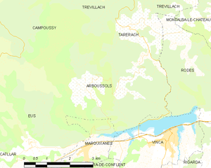 Arboussols is located in the canton of Sournia and in the arrondissement of Prades.