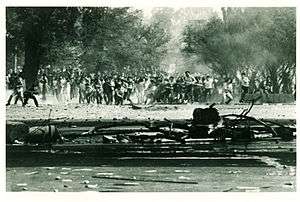 In a message sent to Santiago press agencies in February 1981 the MIR claimed to have carried out more than 100 attacks during 1980, among them the bombing of electricity pylons in Santiago and Valparaiso on November 11 which caused widespread blackouts, and bomb attacks on three banks in Santiago on December 30 in which one carabinero was killed and three people wounded.[27] On 19 September 1981, Private Victor Manuel Nahuelpan Silva is killed during counter-insurgency operations in the Neltume area.[28] In November 1981, MIR guerrillas killed three member of the Investigative Police as they stood in front of the home of the chief minister of the presidential staff. In sweeps carried out from June to November 1981, security forces destroyed two MIR bases in the mountains of Neltume, seizing large caches of munitions and killing a number guerrillas.[29] MIR guerrillas retaliated and carried out twenty-six bomb attacks during March and April 1983.[5]