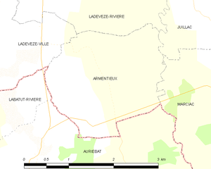 Armentieux is located in the canton of Marciac and in the arrondissement of Mirande.