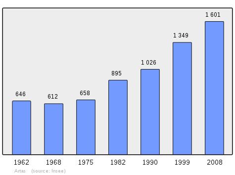 In 2010 the commune had 1,620 inhabitants. The evolution of the number of inhabitants is known from the population censuses conducted in the commune since 1793. From the 21st century, a census of communes with fewer than 10,000 inhabitants is held every five years, unlike larger towns that have a sample survey every year.[Note 1]