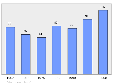 In 2010 the commune had 118 inhabitants. The evolution of the number of inhabitants is known from the population censuses conducted in the commune since 1793. From the 21st century, a census of communes with fewer than 10,000 inhabitants is held every five years, unlike larger towns that have a sample survey every year.[Note 1]