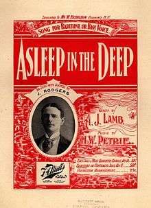 "Asleep in the Deep" is a song written by Arthur J. Lamb and composed by Henry W. Petrie in 1897. It is titled after a refrain at the end of the song. The phrase "asleep in the deep" refers to those who have drowned. The lyrics alludes to those who have met such a fate, while at sea.