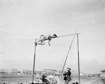 ![]() LeRoy Samse clearing the bar on the way to the silver medal. |