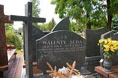 "In this place on the grounds of the former factory "Pocisk"[bullet] the following camps were located: from September 1941 until the beginning of 1944 - Nazi labor camp for Soviet prisoners of war - Komando Stalag 333, from July 1944 until September 1944 - Nazi labor camp for Polish prisoners, from September 1944 until July 1945 - Soviet NKVD special camp No. 10. (The monument is dedicated to) the soldiers of the partisan unit of the Home Army from Camp "Mewa-Kamień" Mińsk Mazowiecki who under the command of 2nd Lieutenant Edward Wasilewski "Wichura" overran the special NKVD camp No.10 in Rembertów on the night of 20/21 May 1945. Over 500 prisoners were freed from the camp and this action interrupted the deportation of the prisoners to the East. (This monument is dedicated to) prisoners of the NKVD camp No. 10 in Rembertów, soldiers and activists of the Polish Underground State, repressed and murdered, whose remains lay on the grounds of former factory "Pocisk" and in the lands of the Soviet empire".