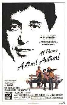 Author! Author! is a 1982 American comedy-drama film directed by Arthur Hiller, written by Israel Horovitz, and stars Al Pacino, Dyan Cannon and Tuesday Weld. The film which is loosely autobiographical, concerns a Broadway playwright who strives to solve his family and relationship troubles while trying to get a new play into production.